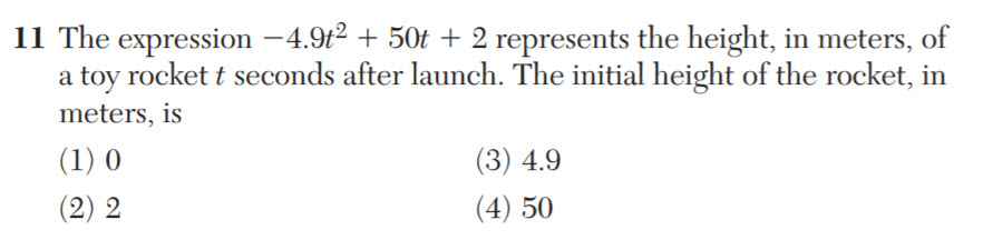 Jan 2018 CC Alg I Toy Rocket April 24, 2018 882 × 216 Get the Math and Get the Points Jan 2018 CC Algebra I Regents #11