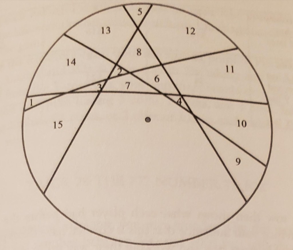 Q: Suppose you want to cut a circular cake with six straight cuts. What is the maximum number of pieces you can create? They can be different sizes but cannot be moved around.