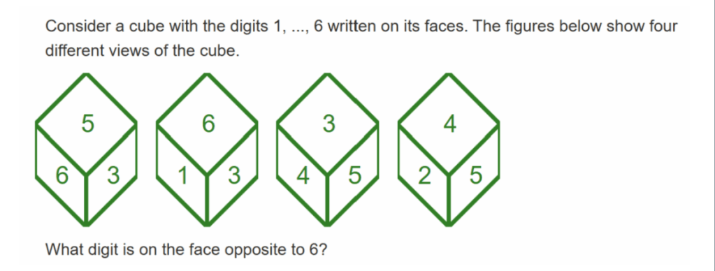 If we position Cube 4 so that the 4 and 5 are overlaid on Cube 3 then 3 and 2 are opposite one another.